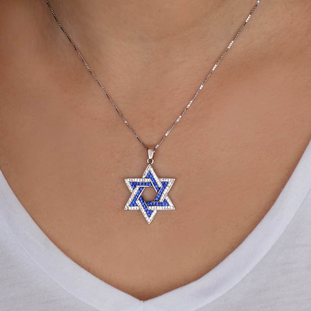 **there is a smaller version of the blue and white star od david. link to purchase: blue and white zirconia silver necklace (the smaller version)