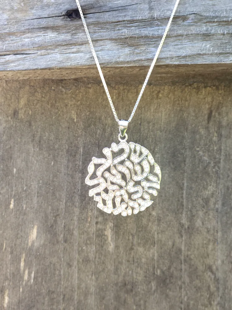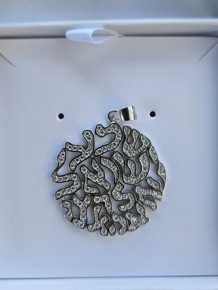 This beautifully crafted sterling silver pendant features the powerful inscription "Shema Israel" surrounded by a circle of sparkling white zirconia stones. The pendant's intricate design combines traditional elements with modern elegance, making it a meaningful and stylish addition to any jewelry collection.