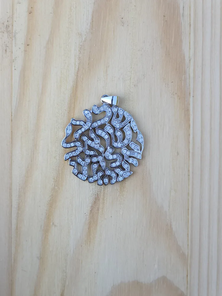 Pendant Design: "Shema Israel" Inscription with White Zirconia Stones
